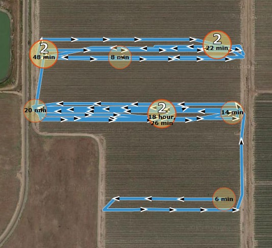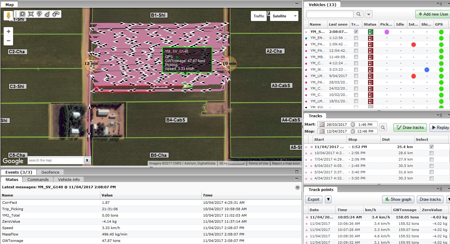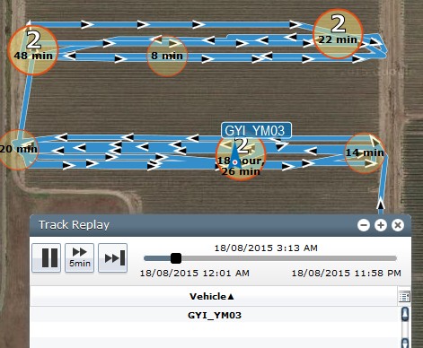 Detailed maps for individual vehicle/ harvester showing also "stand stills" (duration adjustable)